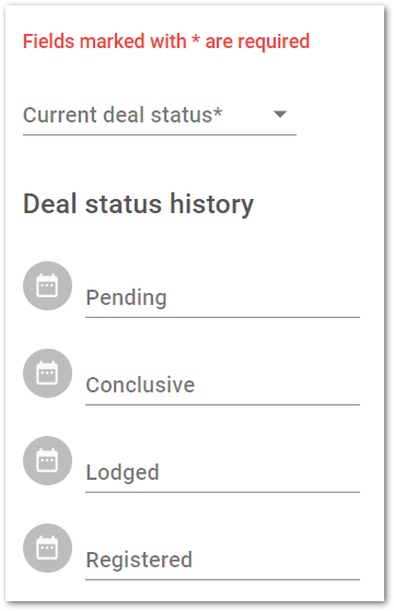 To generate reports with status history, we created a new section on the Deal page named Deal Status History. Each time the status of a deal is updated, a date must be entered.